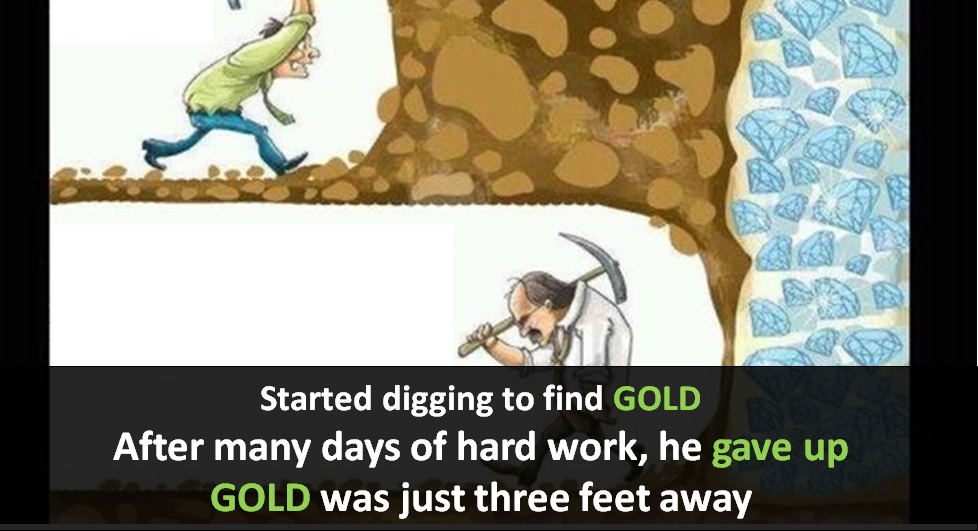 Long afterward, Mr. Darby recouped his loss many times over. He learnt from his mistake of giving up just three feet away from gold. Darby used this life experience into the business of selling insurance.